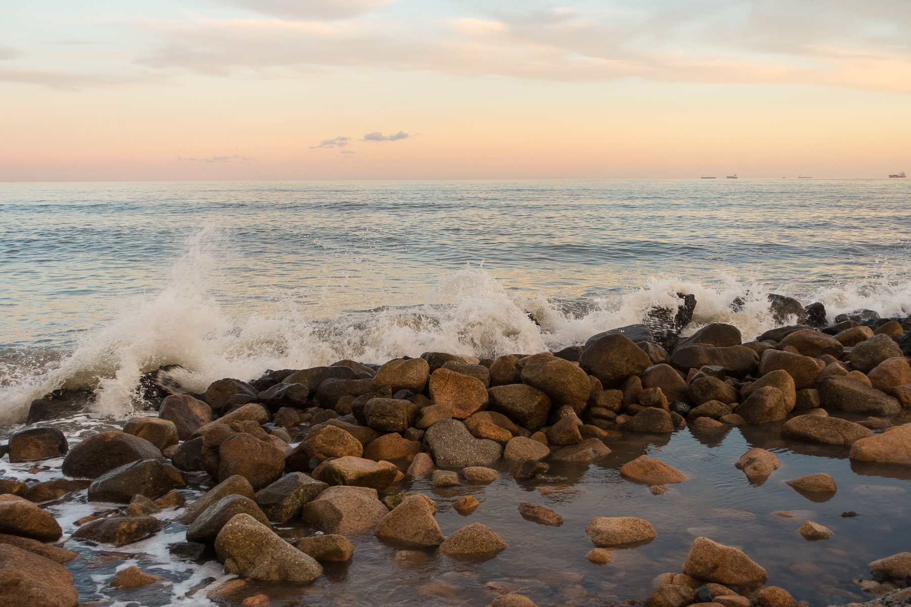 Per chi vive al mare, la situazione è molto comune, quindi a me manca un po' di effetto wow. Ma i colori sono belli e quel tipico azzurro del tramonto sul mare, giustificano lo scatto ancora più dello spash.