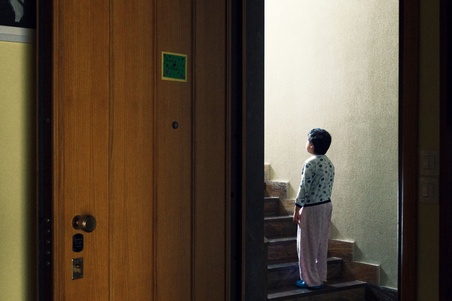Mi piace come hai allestito la scena ed il senso di mistero che trasmette. Trovo però che, per accrescere queste sensazioni, sarebbe stato preferibile scegliere una illuminazione diversa, un po' come nella famosa scena della bambina di poltergeist davanti al televisore o del bambino di incontri ravvicinati del terzo tipo davanti all'astronave. Avrei anche lasciato il piccolo protagonista a piedi scalzi (senza le Crocs)