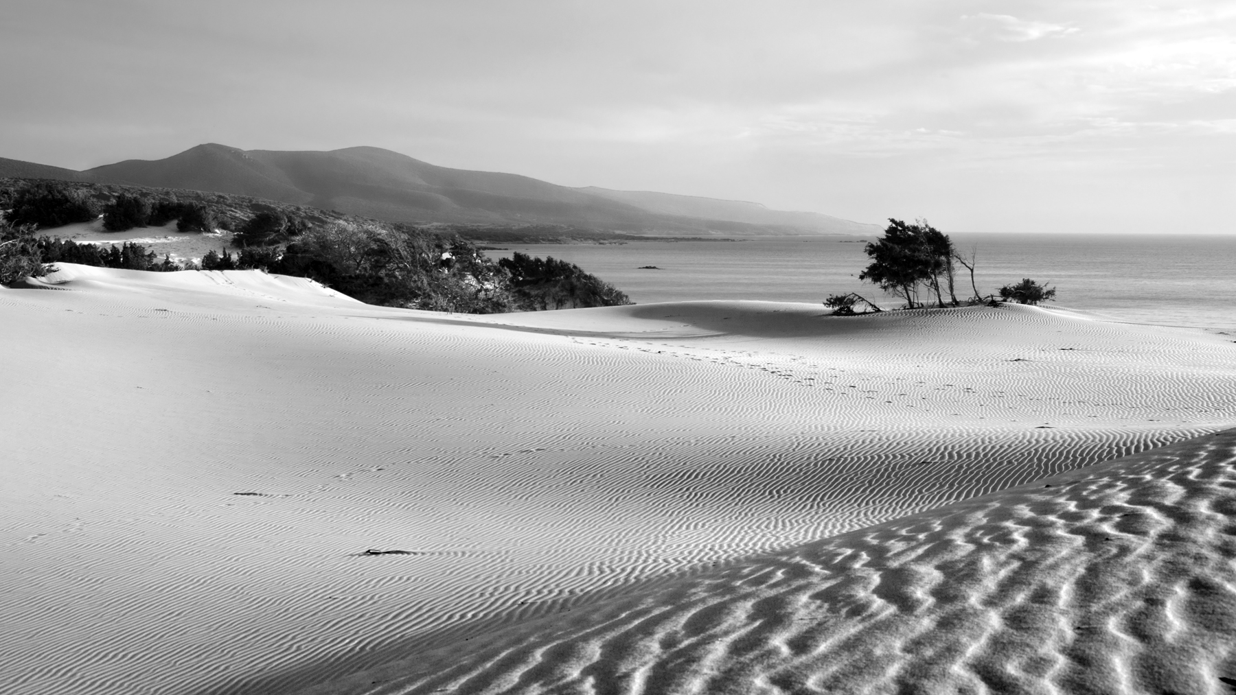 Una sinfonia in scala di grigi che diviene un'ode alla nostra Isola meravigliosa! Un B/N ricco di sfumature e gradazioni e con una ampiezza tonale davvero rimarchevole. Deliziosa la texture della sabbia disegnata come solo il maestrale sa fare...