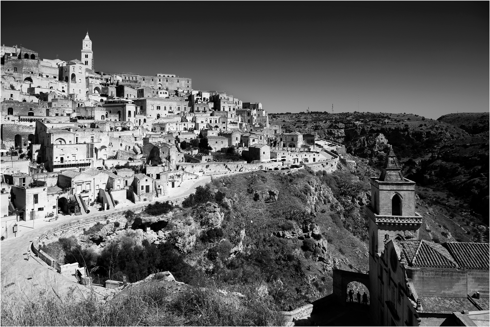 Direi una rappresentazione ben riuscita. questo B&N ben dosato ha il suo perché ed accentua i connotati salienti del paesaggio, ossia il chiaro delle case del paesello rispetto al cielo e prati circostanti che sono ben piu’ scuri. Questo pone in risalto la tipologia stessa del paese, con le case fitte ed abbarbicate sull’altura, quasi fossero costruite tutte appiccicate l’una all’altra. Trovo buona l’idea di includere il campanile in primo piano a destra. Con la sua massa “riempie” la zona destra altrimenti un poco troppo vuota e fornisce anche una certa profondità al fotogramma, con un certo volume quello del paesello sulla sinistra, tanto fitto.