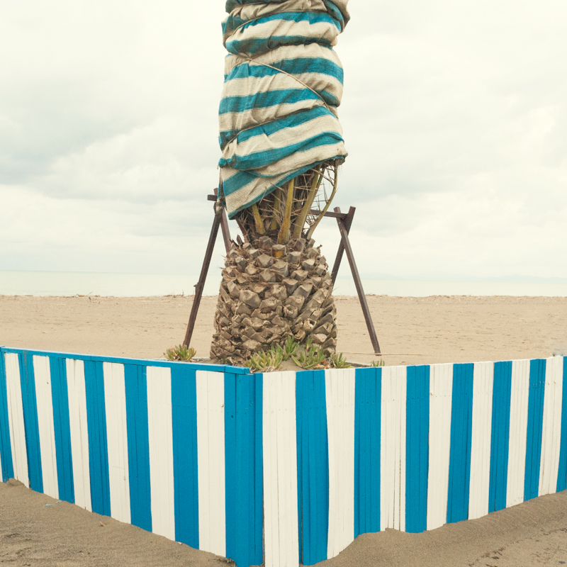 il richiamo telo/staccionata, la tonalità generale dei toni medi un pò acidi.