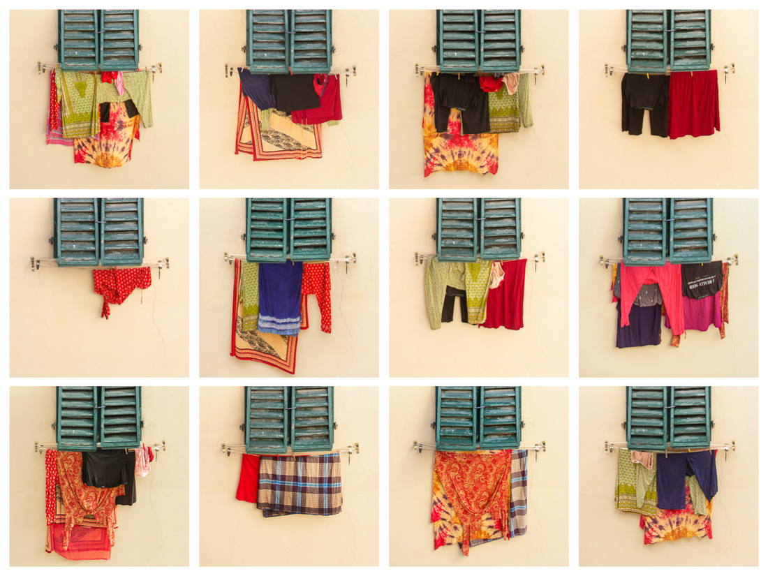 Complimenti alla famiglia che abita lì e che utilizza tutti questi panni così variopinti! E poi complimenti a te che hai composto davvero bene questo collage molto colorato e allegro