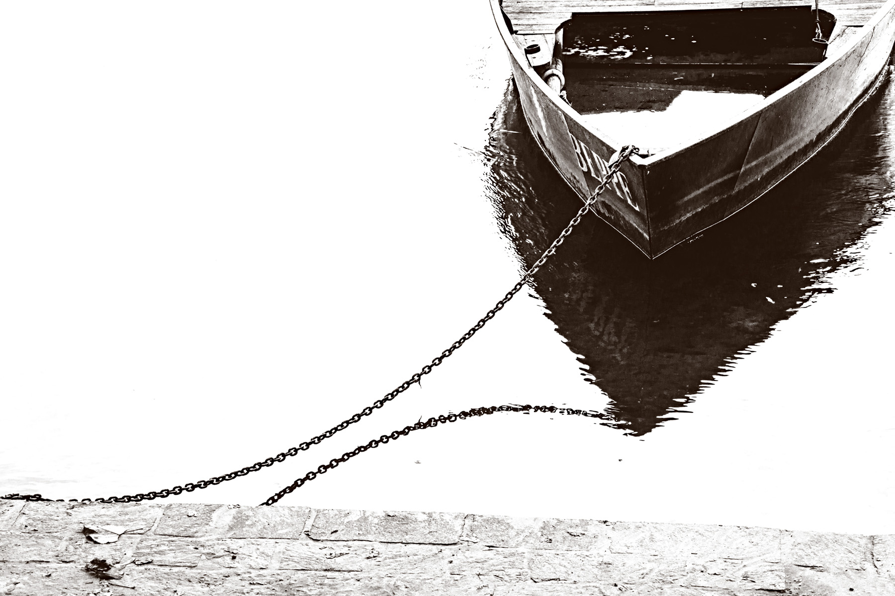 Affascinante questa eliminazione di mezzi toni… L’immagine è anche perfettamente composta, con la barca nell’angolo preciso e la catena e il suo riflesso ad equilibrare la scena. Molto brava!