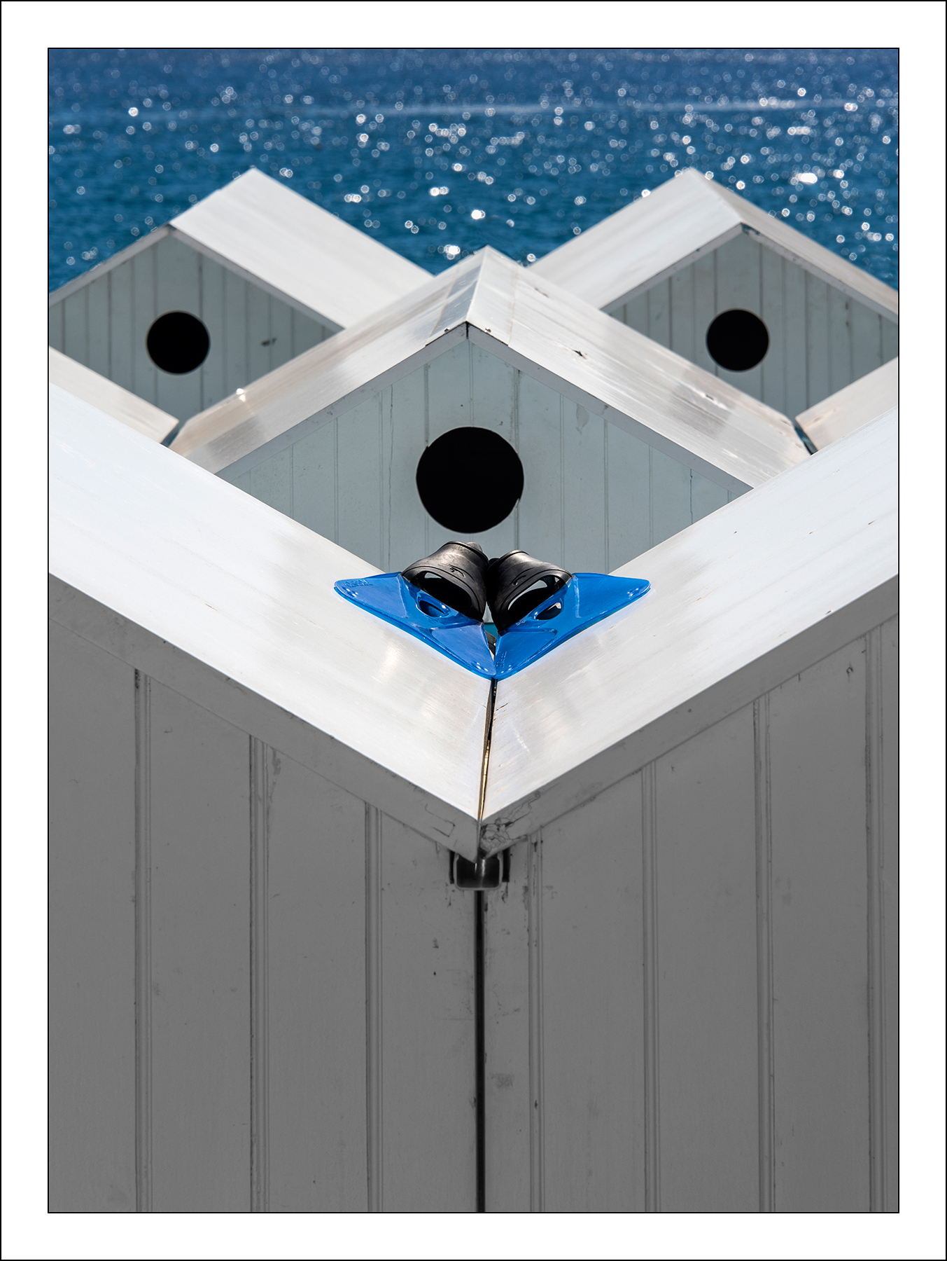 La foto funziona molto bene, grazie ad un uso accorto della profondità di campo ed alla presenza delle pinne disposte ordinatamente e cromaticamente perfette