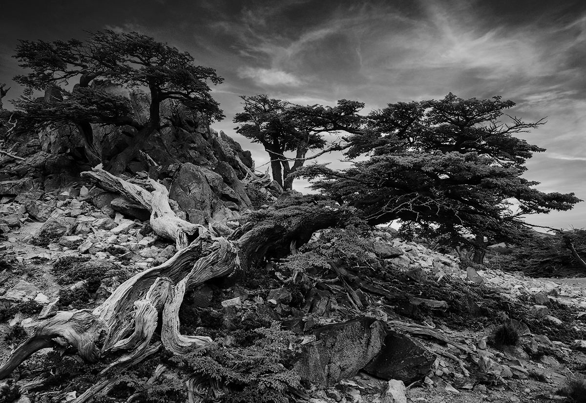 Ricorda i ginepri della mia Sardegna! Il B/N in generale mi pare discreto. Non mi piace molto l'articolazione tonale nell'area sinistra delle rocce: il bianco è come opacizzato con un contrasto forse, localmente, troppo morbido.