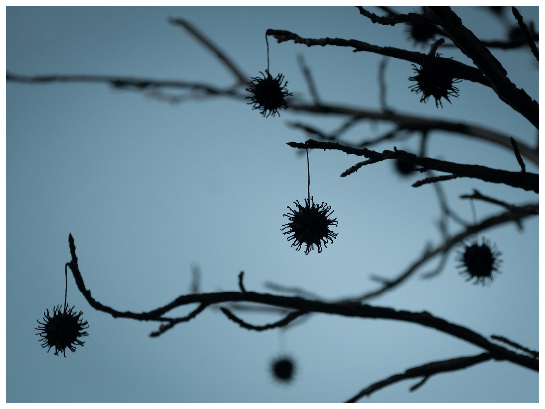 A parte l'inquietudine data dal momento, è una ripresa interessante. Il controluce accentua la forma dei frutti pendenti rendendo possibile la similitudine.