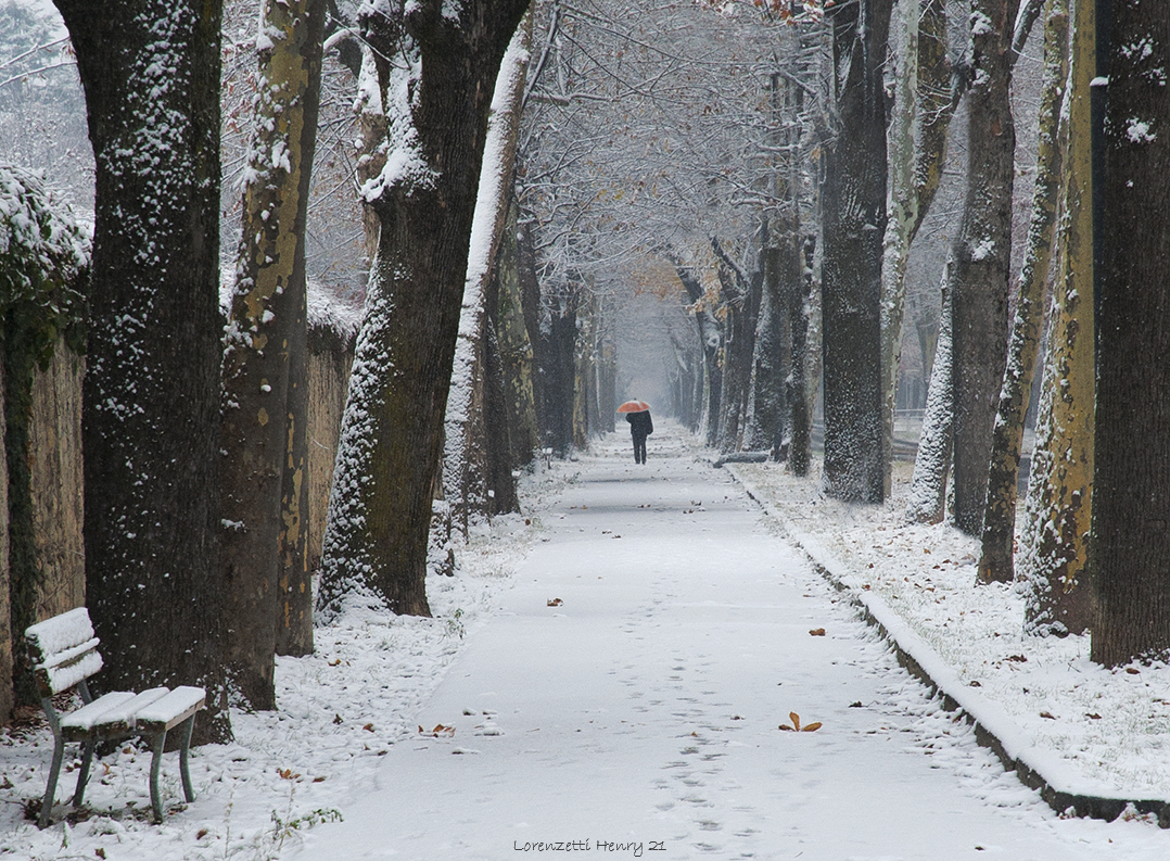Nel silenzio bianco della neve spicca solo l'ombrello del passeggiatore solitario  _________________ Massimo Facco