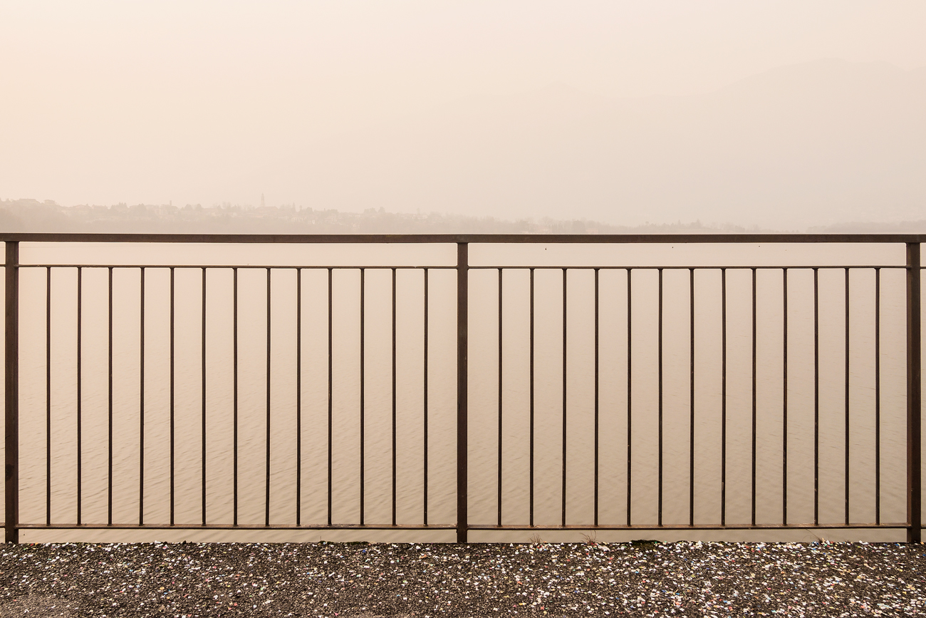Molto piacevole questa ringhiera che ci fa osservare in lontananza quel paesaggio immerso nella nebbia.. ben vista.