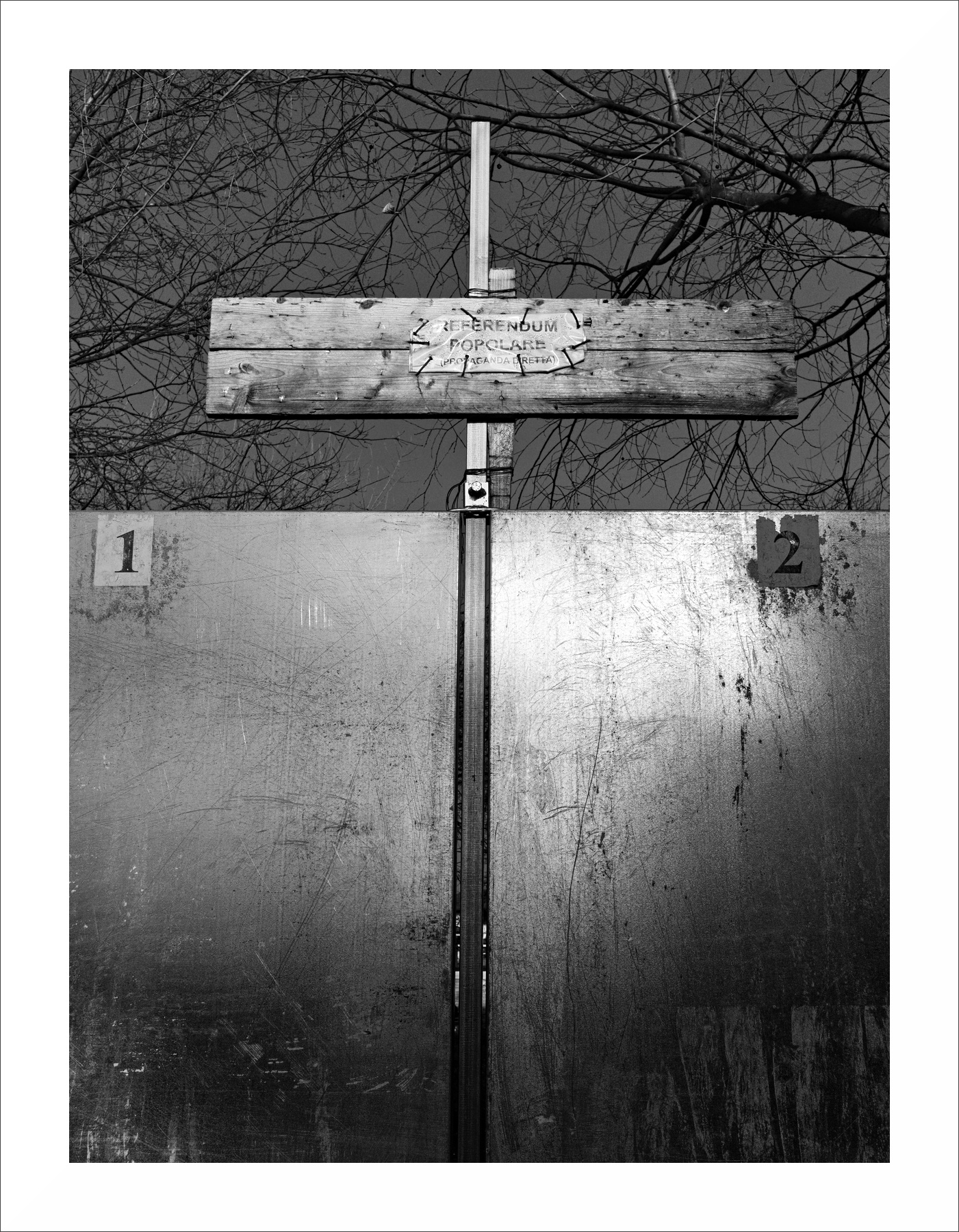 | Una trasfigurazione “mistica” del referendum , crocifisso con ai lati le proposte da scegliere. Notevole |