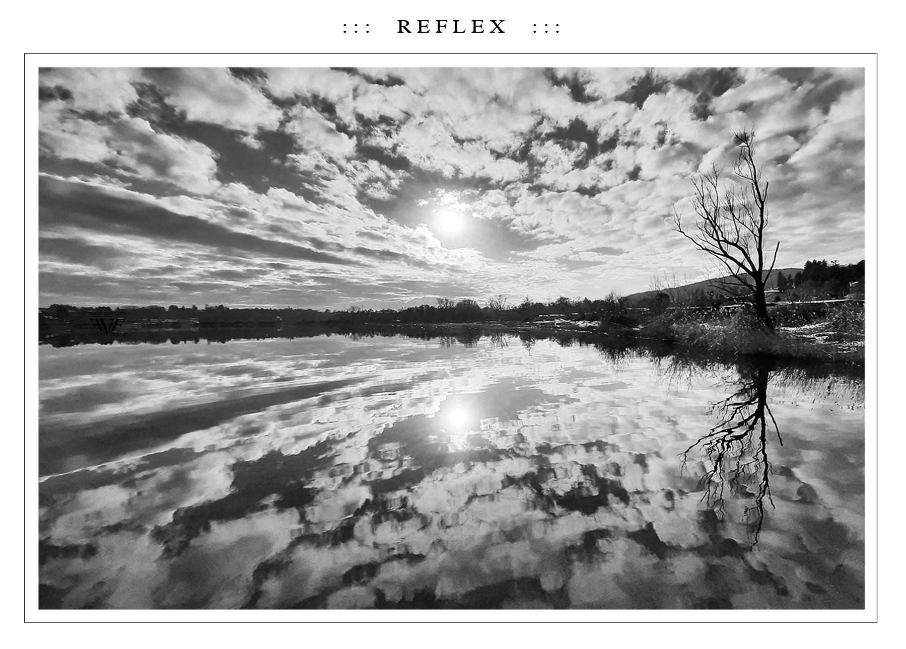 Maestoso questo paesaggio specchiato, l'alberello a dx scheletrico si scontra con la sofficità delle nuvole e rafforza la composizione.