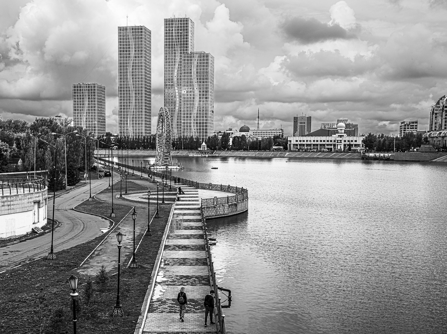 Le S dei percorsi pedonali richiamano i motivi sulle facciate dei palazzi; su questi ultimi e sul cielo si potrebbe (forse) aggiungere maggior contrasto.