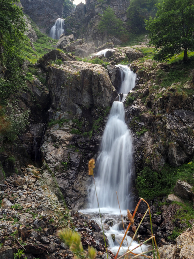 Buono lo sviluppo in verticale che asseconda il movimento dell' acqua, Buona anche la scelta del tempo con l effetto seta che ne deriva. I fili d'erba in primo piano disturbano e son dubbiosa anche sull angolino di cielo in alto, forse non necessario.