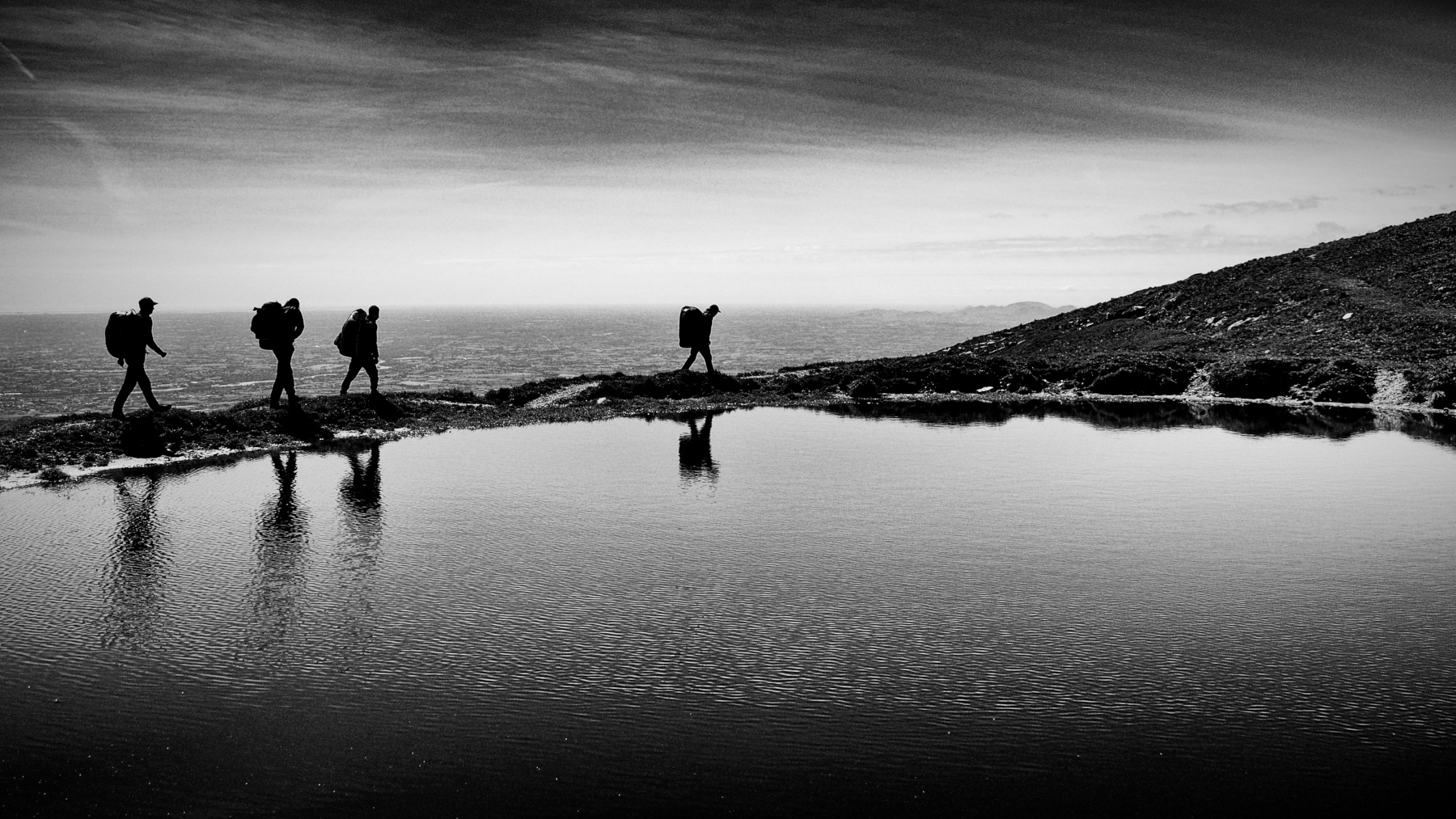 Riflesso, sagome e la pianura in lontananza. Ottimo anche il b/n.