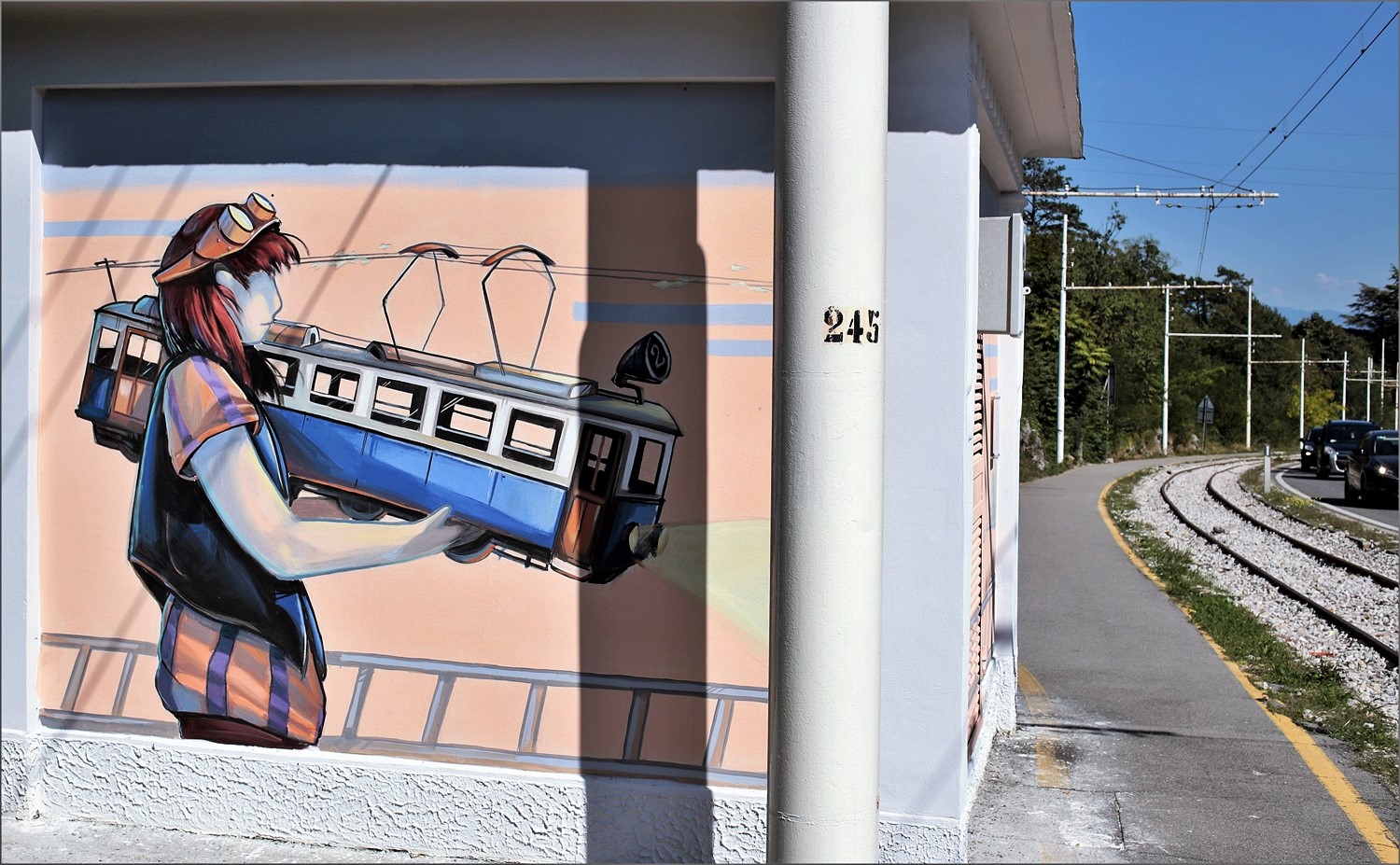 Scopro dalla tua spiegazione che l'affascinante tram non è più in funzione e sono molto dispiaciuta, perché ricordo che era una linea molto suggestiva, non solo per il percorso ma anche per le caratteristiche tecniche particolari e ardite… Buono il murale che denuncia il fermo e buona la tua foto che lo documenta.