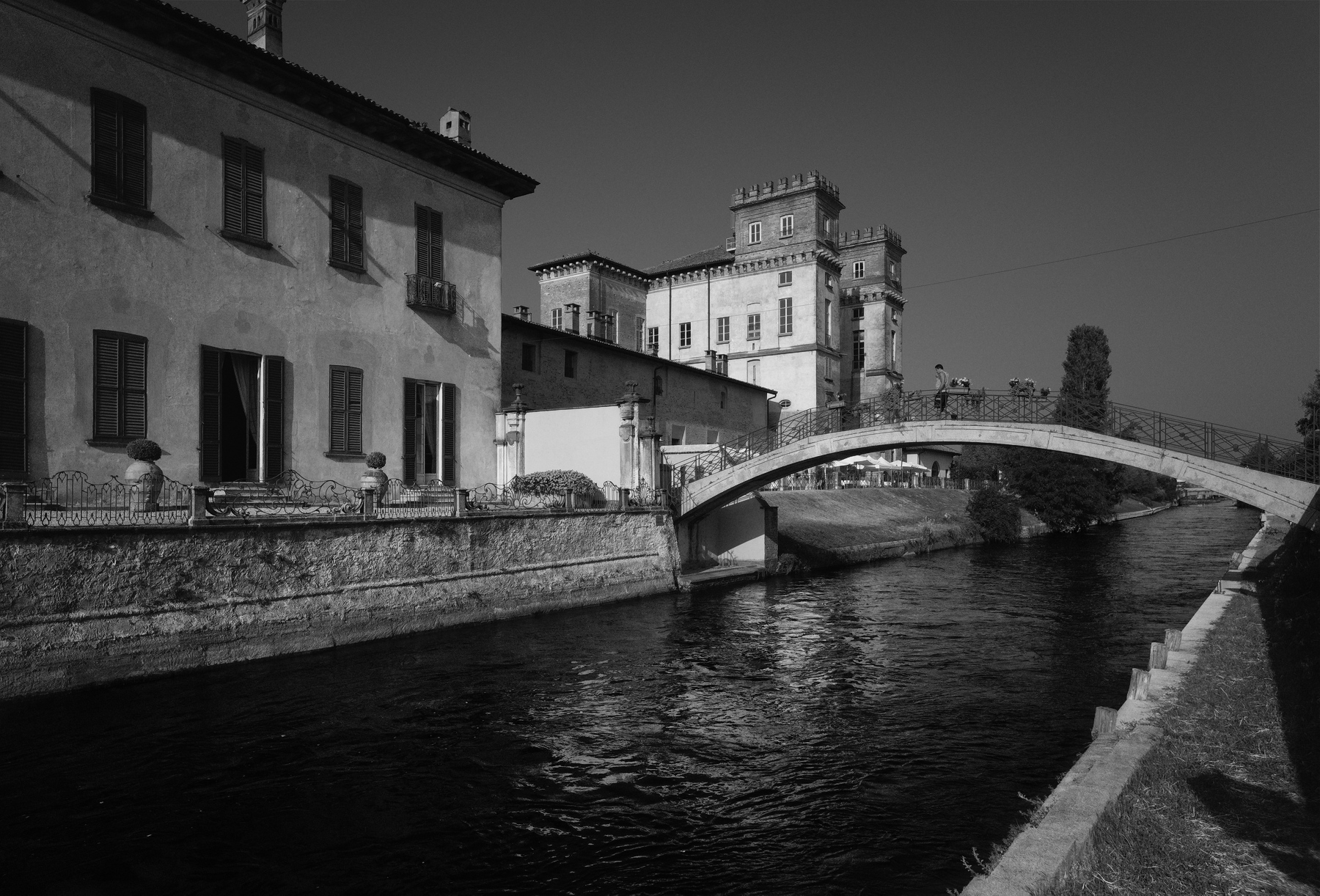Scatto dalla doppia lettura, da un lato il BW deciso e la luce bassa che disegna lunghe ombre sulla facciata della casa, danno una certa cupezza all'immagine, dall'altro il castello (?) e la notevole profondità la addolciscono. Ne risulta un fotogramma gradevole degno di andare in stampa.