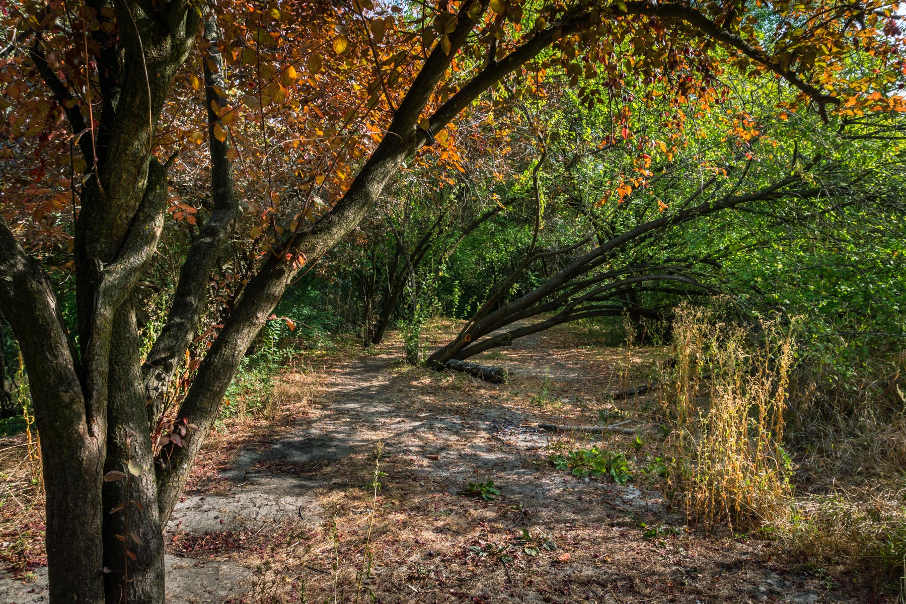 Le prime foglie autunnali fanno da cornice a questo intricato bosco.Belli i colori e la composizione con l'albero inclinato sulla diagonale. Sergio.