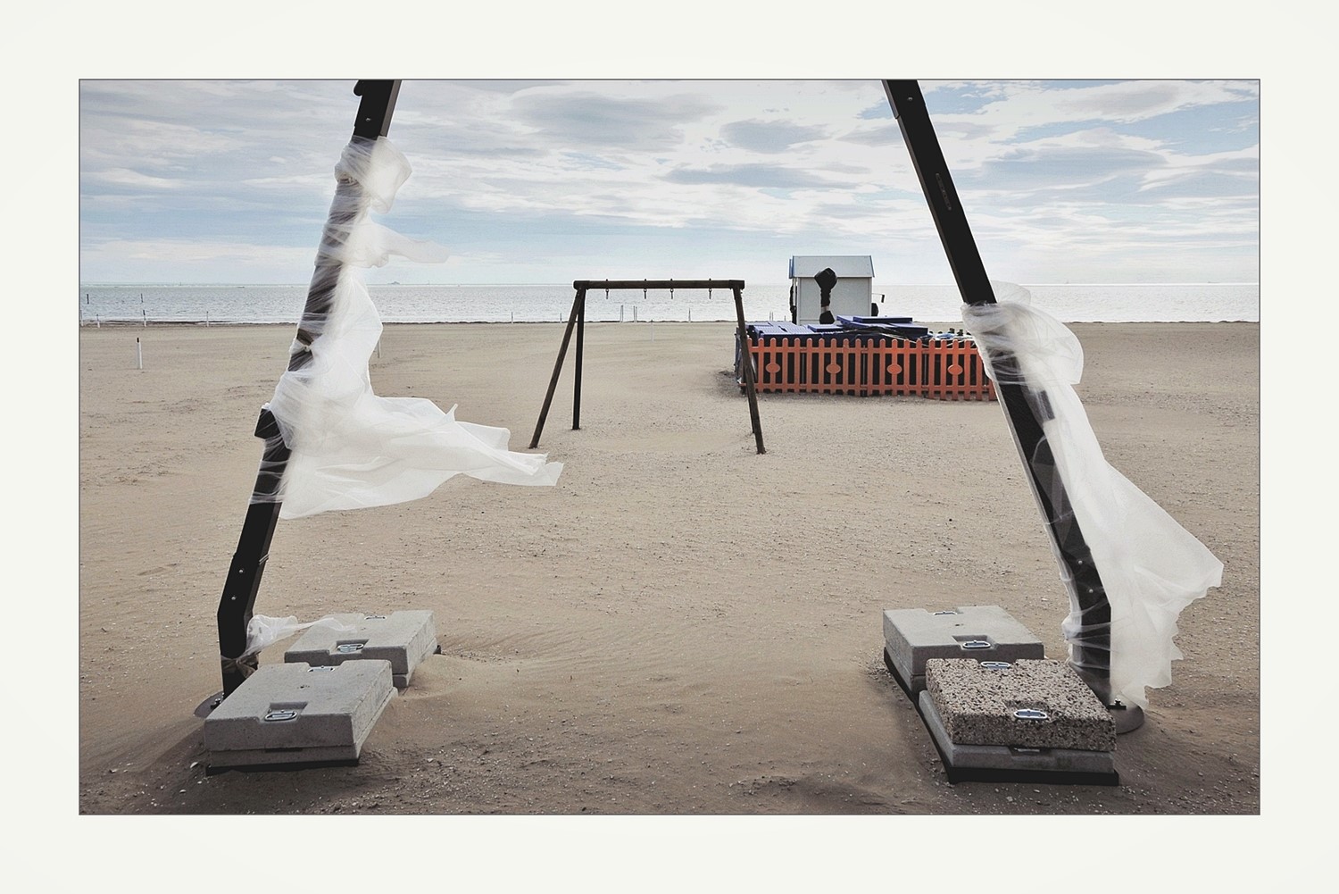 C'è tutta la forza del vento declinata nel veli agitati e nelle placche di cemento che trattengono la struttura. Una narrazione potente. Sempre complimenti!