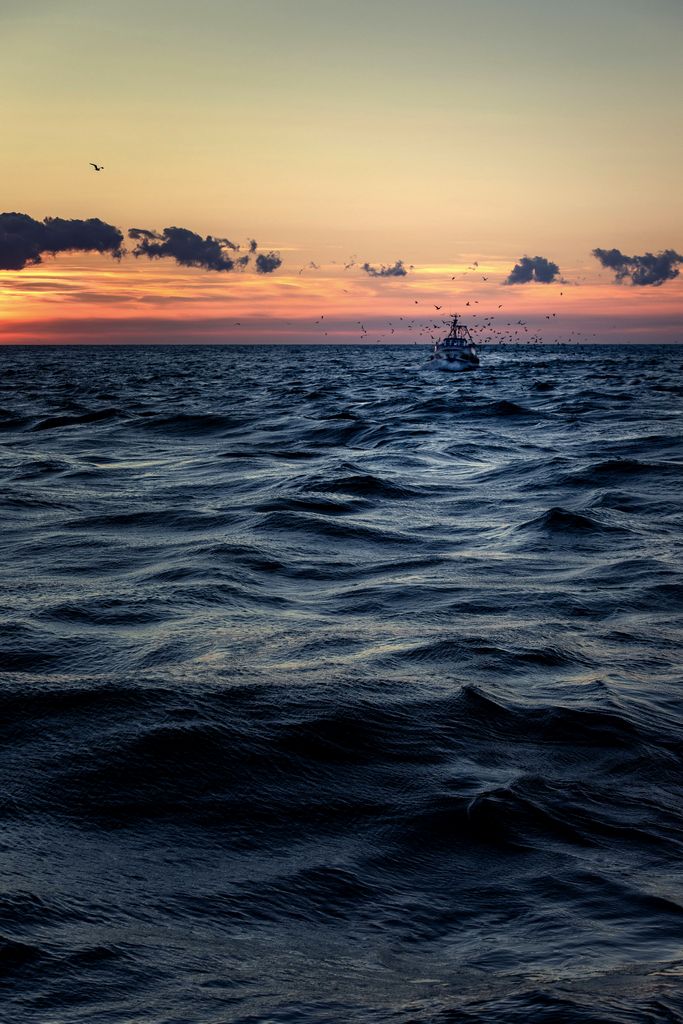 Stupefacente la resa del mare (già ammirata nella analoga orizzontale), in un’immagine dove cielo, peschereccio e gabbiani sono un plus… Molto bravo