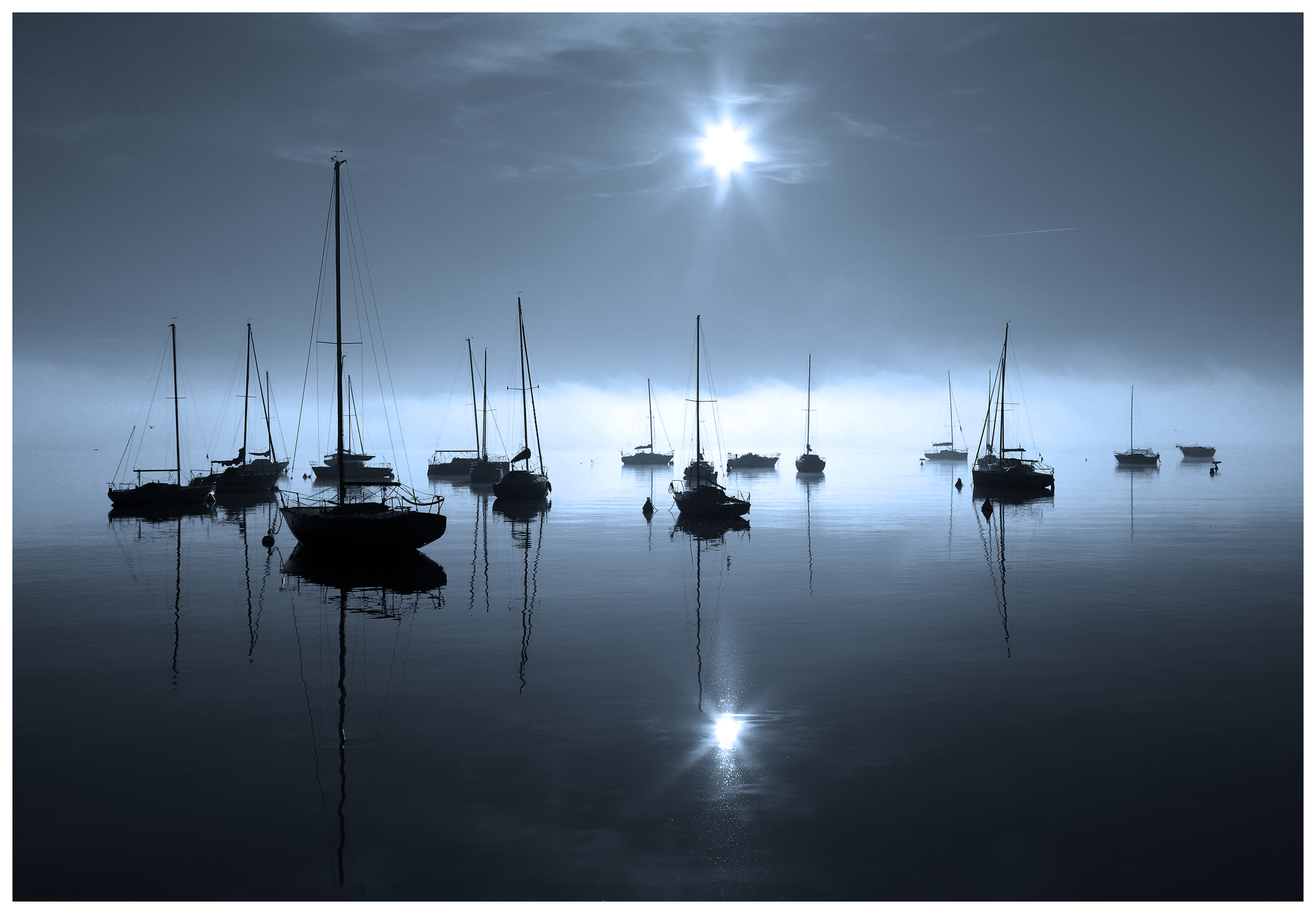 Il lago di Garda offre sempre scenari interessanti. Ieri pomeriggio un pallido sole si faceva strada nella nebbia che ammantava il lago. Questo gruppetto di barche sembravano raggruppate per proteggersi dal freddo...poi una coppia in pedalò ...ma questa è un'altra storia
