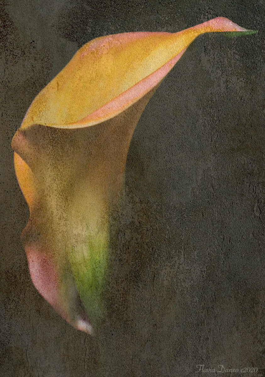 Mi piace questa calla che sembra dipinta su una tela stinta.