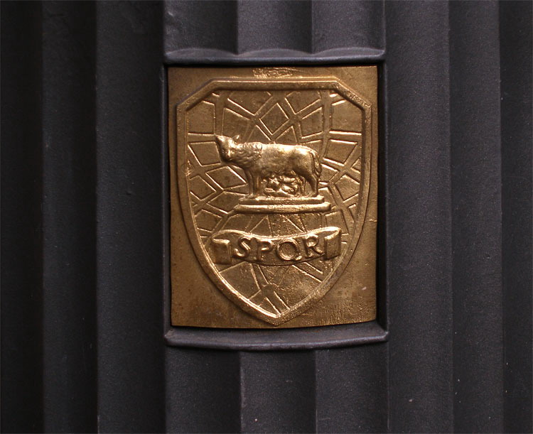 Si tratta semplicemente di uno stemma posto sui bidoni della spazzatura nella Capitale.