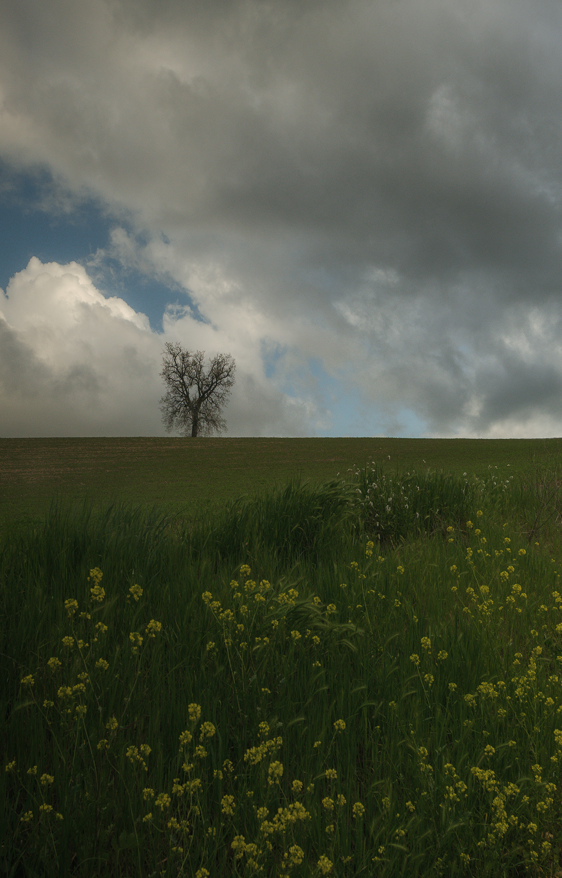 Anche questa mi piace molto, l'albero solitario decentrato sulla sommità del prato.