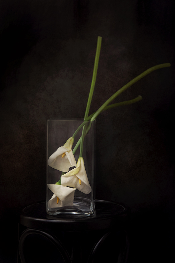 Non so come ti sia venuta l'idea ma la trovo originale, interessante e, naturalmente, ben realizzata. Trovo molto intrigante lo sfondo (è una texture o un fondale vero e proprio? ), direi appropriato e raffinato. Personalmente avrei eliminato i gambi/foglie appoggiati sul ripiano lasciando che il vaso fosse il protagonista indiscusso (ma forse li hai messi per evitare l'effetto "sospeso ").