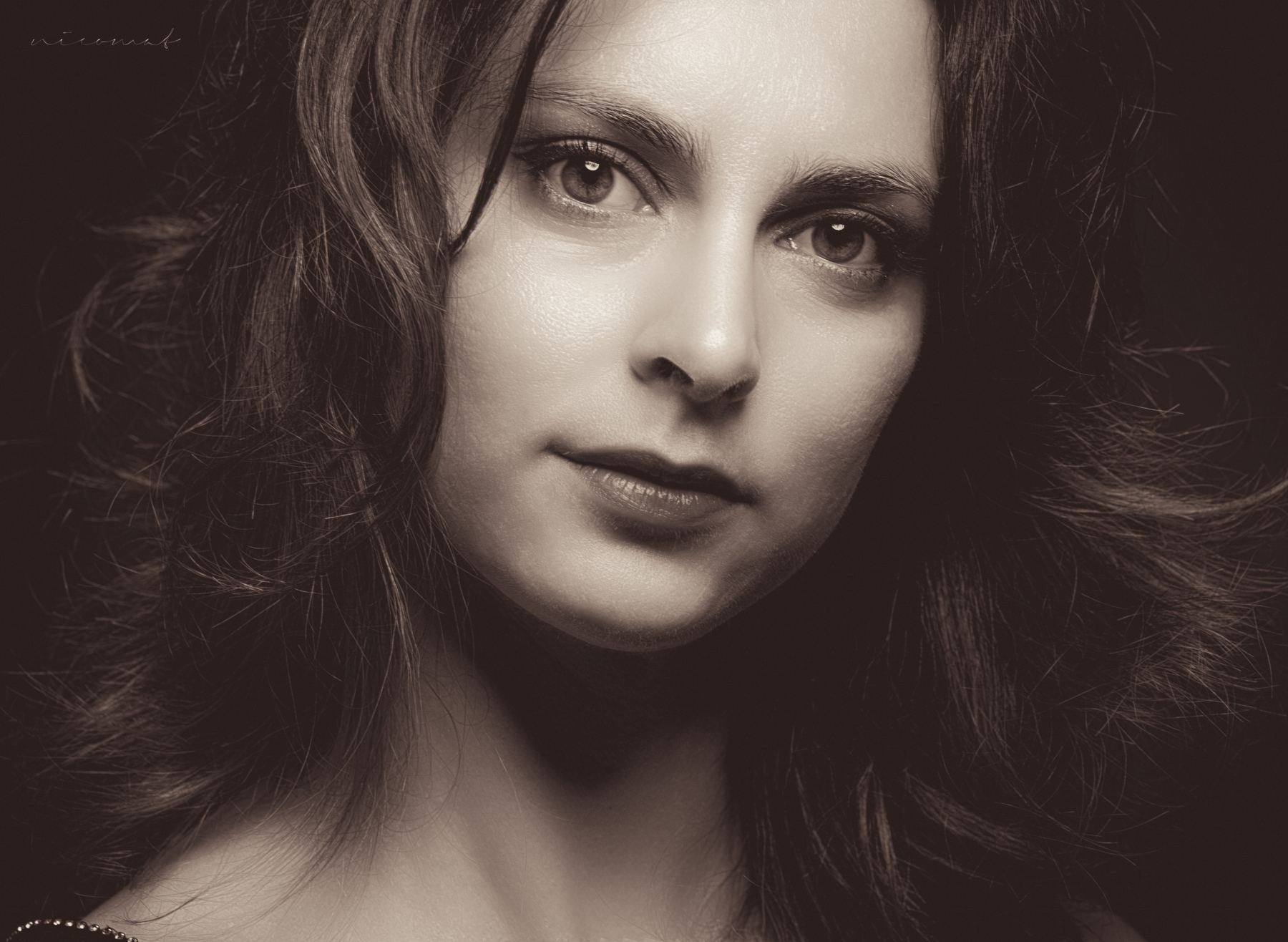ciao Nicola, la modella è molto bella e i sembra anche a suo agio davanti alla macchina, non mi dispiace il viraggio seppia, se mi permetti vorrei dirti , invece, quello che non mi piace, sullo zigomo sx la luce mi sembra troppo alta, avrei posizionato ius pannello sotto il mento per togliere l'ombra un pochino tropo presente e la spallina del vestito in basso a sx.