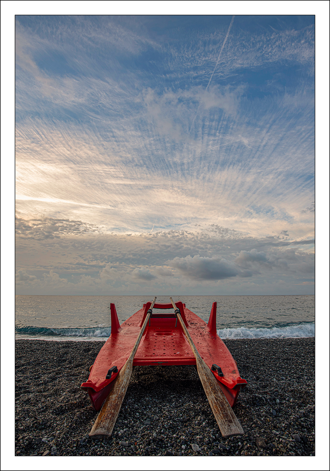 Il cielo è davvero particolare, hai colto una magnifica occasione per portare a casa uno scatto riuscitissimo. Le linee del pattino e quelle del cielo convergono verso la linea di nuvole centrale. Bravo come sempre  _________________ Stefano