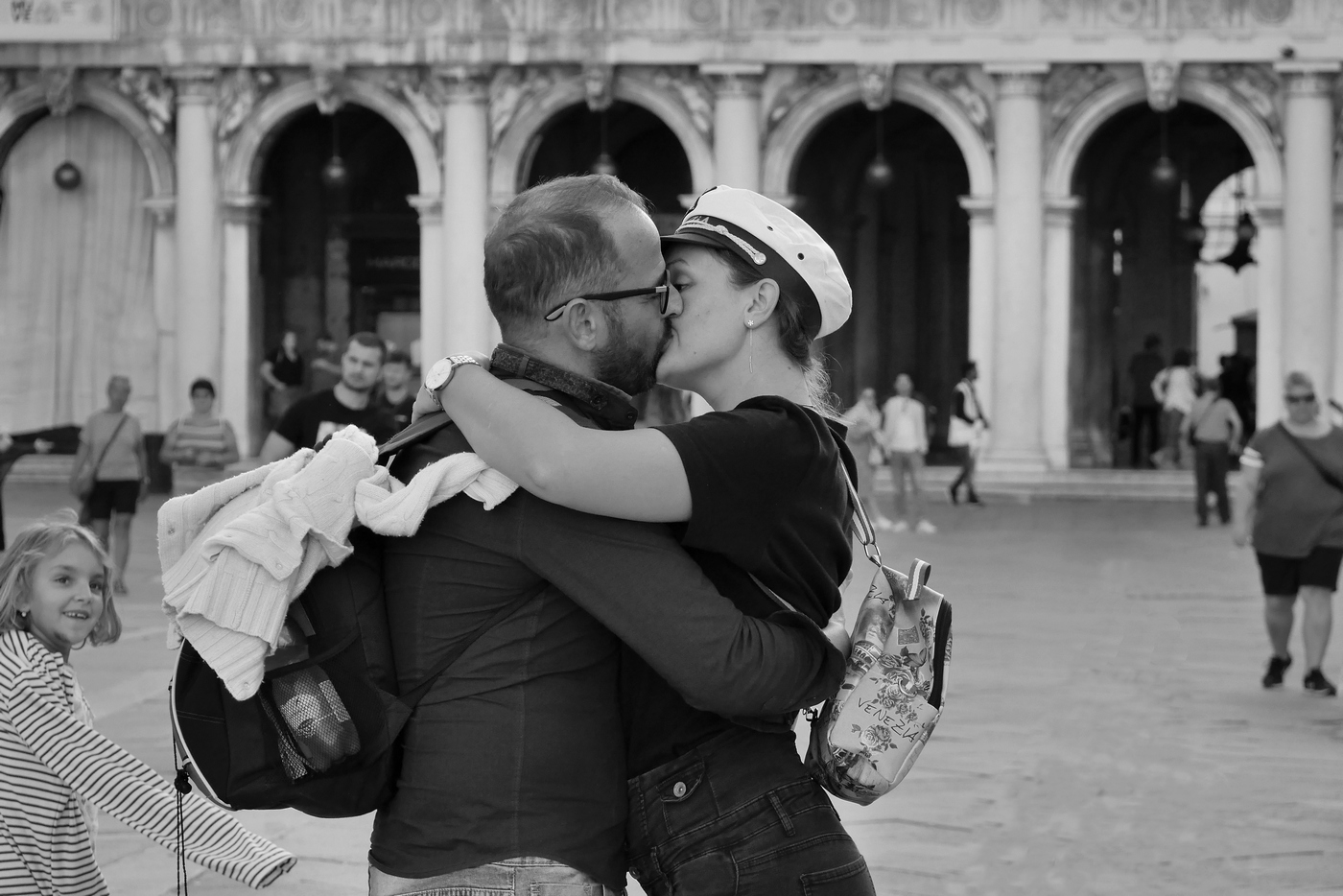 Bellissima street,una inversione del famoso bacio di Eisenstaedt,notevole anche lo sguardo della bimba e valida la inclusione di altri elementi del contesto,forse anche una visione più ampia come giustamente dici.Mi piace molto il bn,la tengo tra le preferite. Ciao,Sergio. _________________ Sergio Demitri https://www.flickr.com/photos/124946035@N02/ |