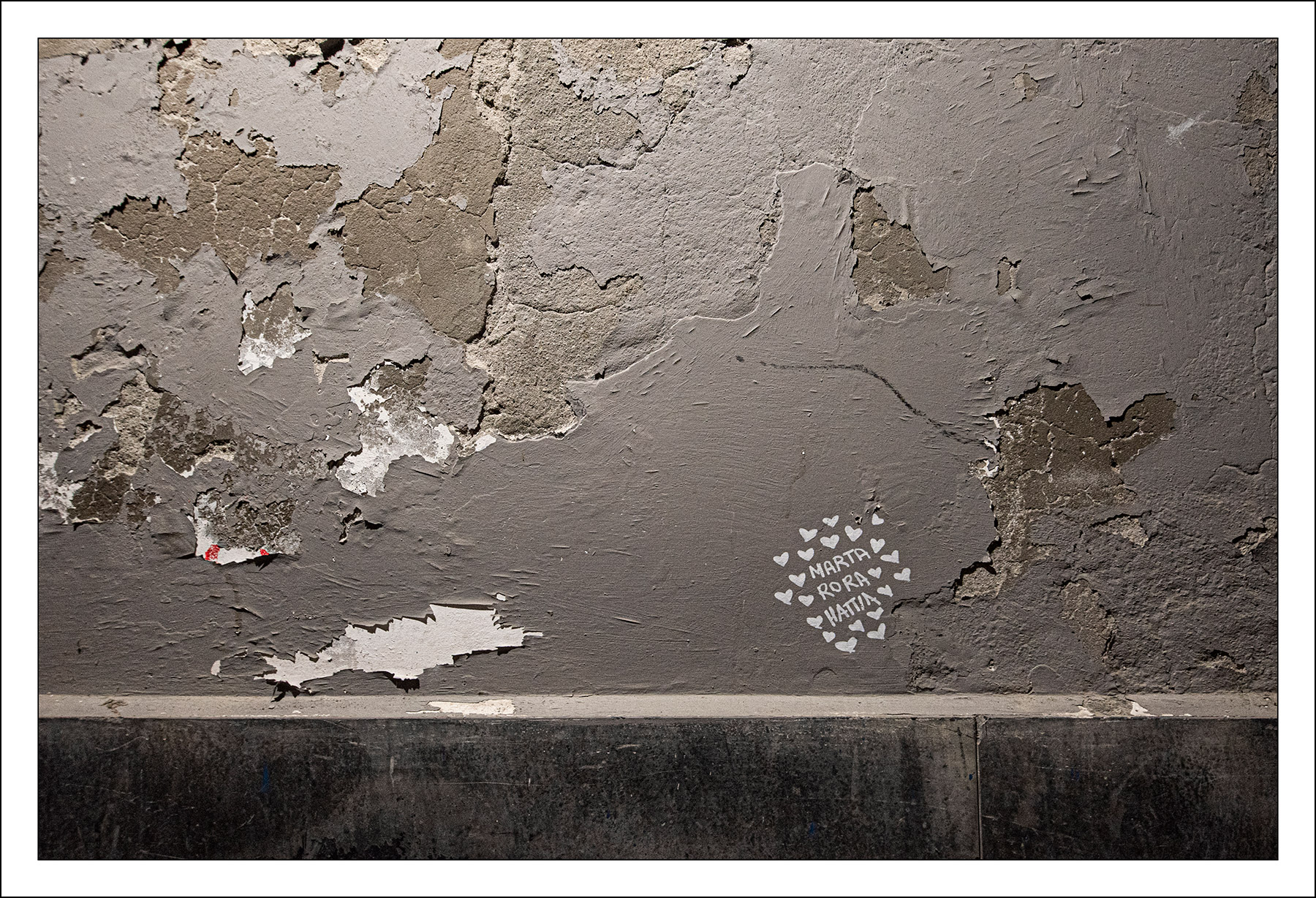 Particolare per i il tono di colore del muro, che è già da solo interessante. Altrettanto particolare le piccola scritta, evocata da titolo. Bella immagine. Ciao, Francesco _________________ Fotocamere Olympus OMD e PEN, Panasonic G3. Software GIMP