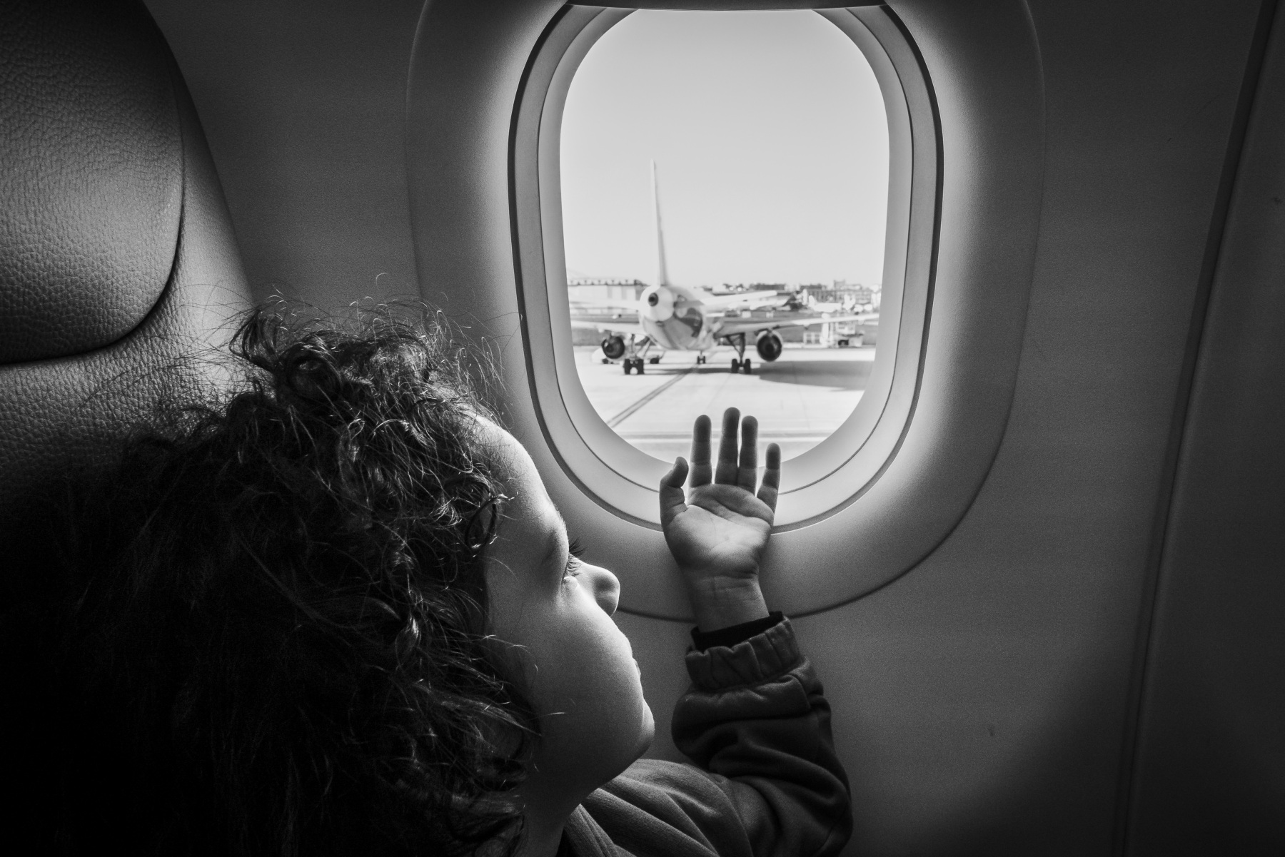 l'espressione sognante del bimo la si vede e nota benissimo, dall'oblò la presenza di un altro aeromobile rende tutto più facile capire dove si rovii il bimbo, gestione della luce e b/n perfette.