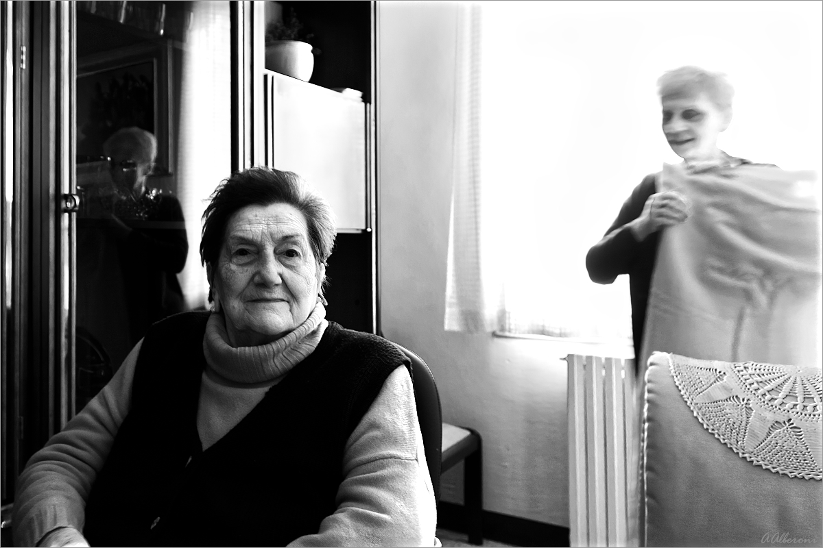 Un bianco e nero di buona fattura. Un ritratto ambientato con altri elementi umani intorno al soggetto principe che però ne delineano e compendiamo la situazione con esattezza.