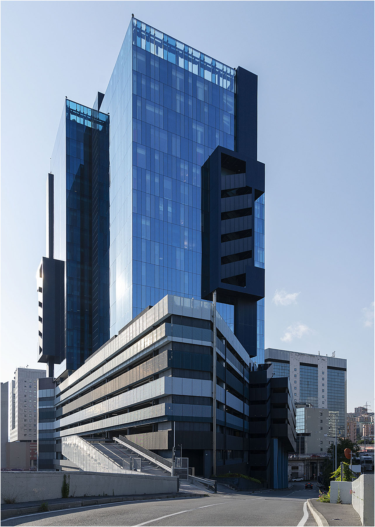 Considerando la superficie a specchio del palazzo forse un cielo movimentato che si riflettesse su di lui sarebbe stato un bel plus, ma anche il blu acciaio che lo caratterizza non + affatto male.