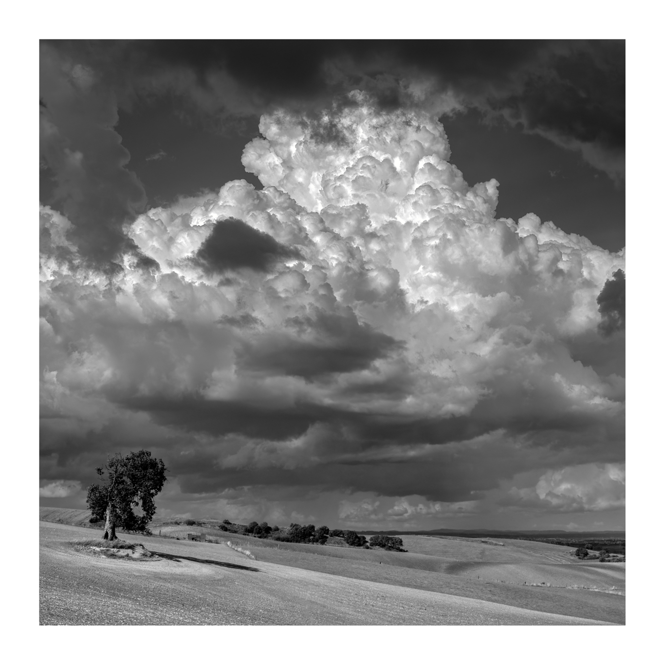 La nuvola sembra ribollire, come avesse il fuoco dentro… Immagine molto suggestiva, ben composta e in un efficace bianco e nero Adeguato il formato quadrato