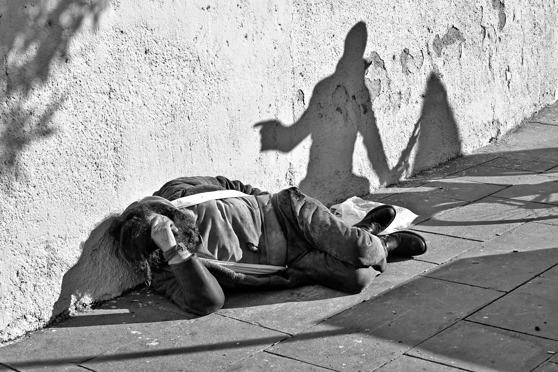 Riproducendole come ombre, spersonalizzi le due figure che così rappresentano l’universo umano che si rapporta alla miseria. Indicano, ma non sappiamo perché: potrebbe trattarsi tanto di un indicare empatico quando di uno riprovevole. Lasci allo spettatore la lettura e, dato il momento che viviamo, così assortito riguardo al punto di vista in merito a queste situazioni, una foto si fatta che non prende una posizione netta, tutto sommato a me pare onesta, scevra di quella retorica che, in un senso o nell’altro (più facilmente in senso buonista) spesso caratterizza questi scatti.