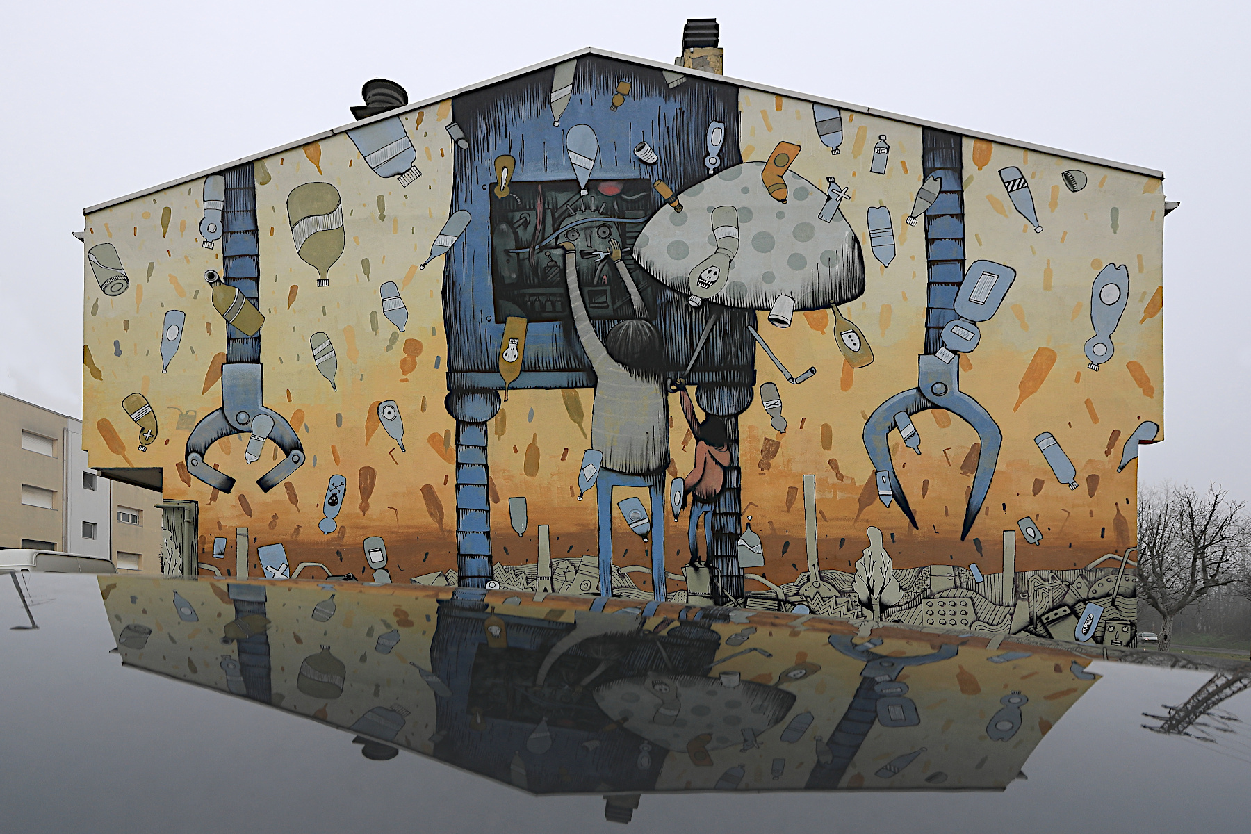 La cosa che mi ha maggiormente colpito è come i colori dei murales fossero quasi annullati dal grigiore e dalla foschia della bassa.