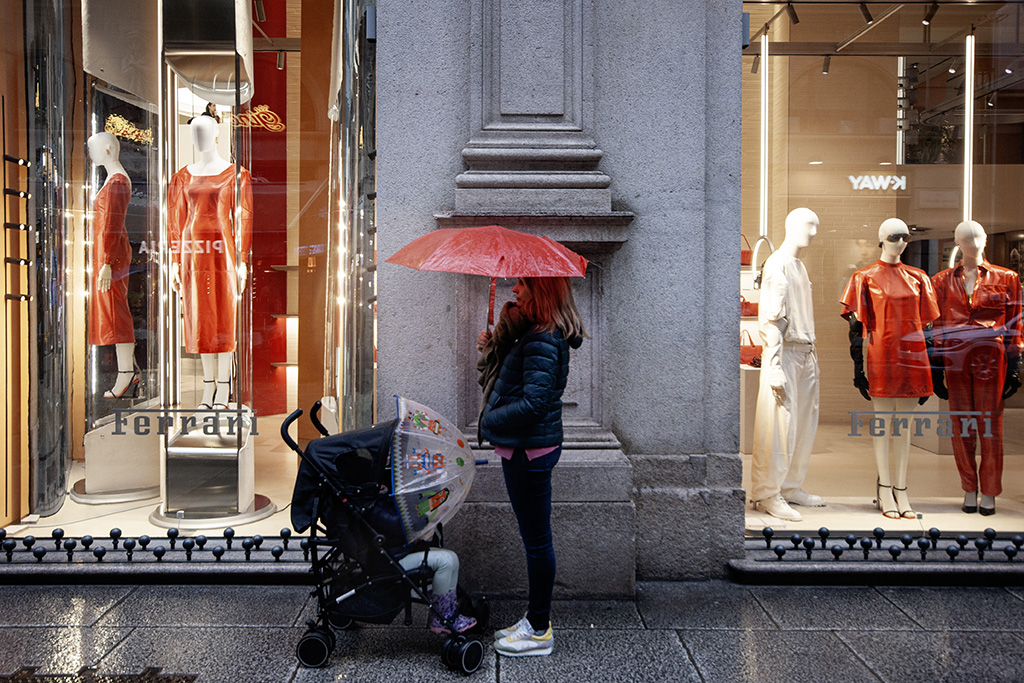 Il facile richiamo di colore mette subito simpatia all'immagine, ma il vero centro è stato fatto con i due ombrelli ortogonali. Bel colpo.