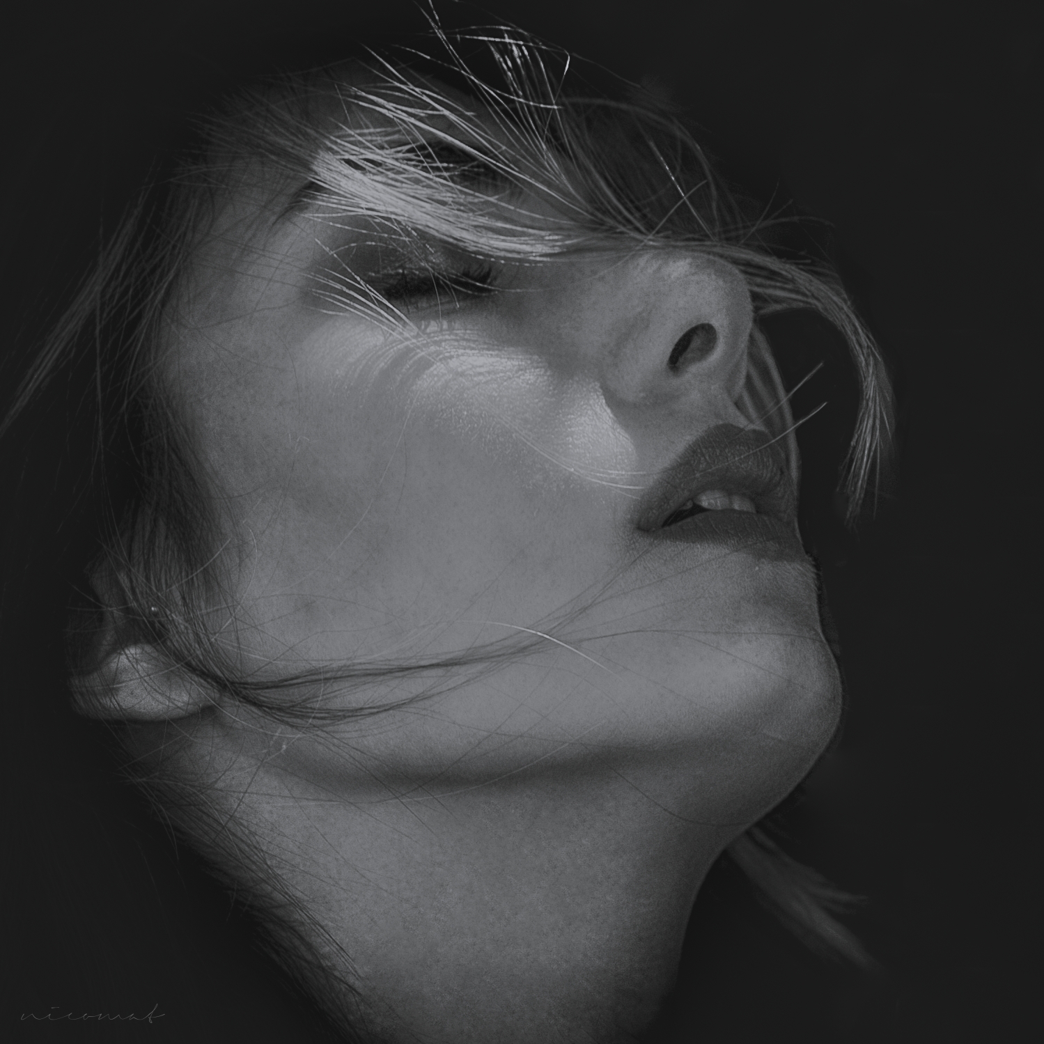 Mi permetto soltanto un consiglio; un pizzico di contrasto a rendere un filo i neri più neri e alzare un pochino i bianchi a dare maggiore forza alla ciocca illuminata al gioco di luci e ombre sulla guancia della ragazza.