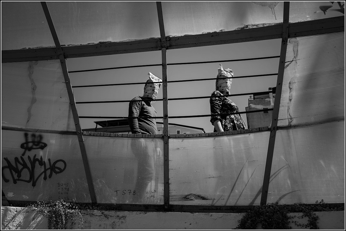 La categoria suggerirebbe un set preparato, ma in realtà ha tutto il sapore di una genuina foto di strada, enigmatica e straniante.