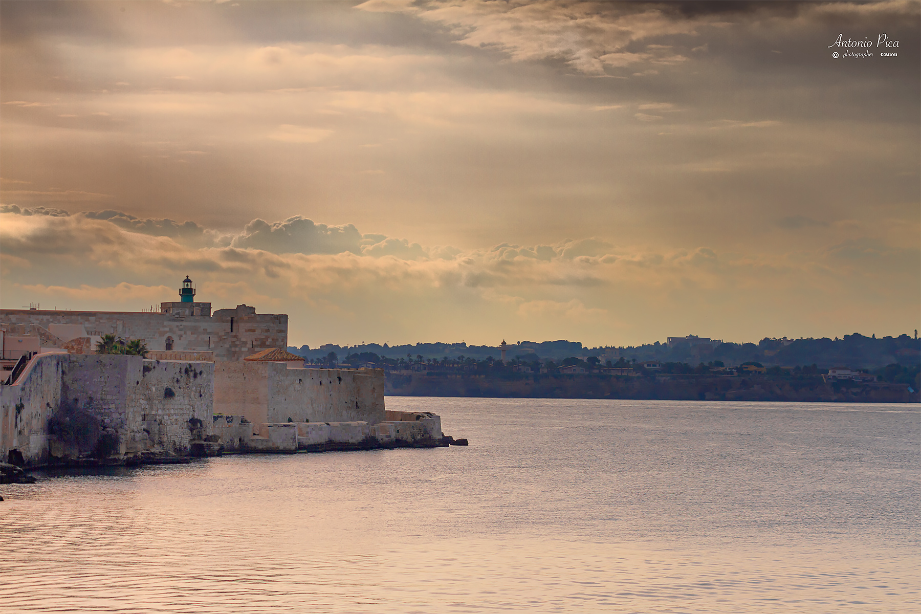 scatto effettuato dal lungomare della marina di siracusa(lungolanotte) verso il castello Maniace.