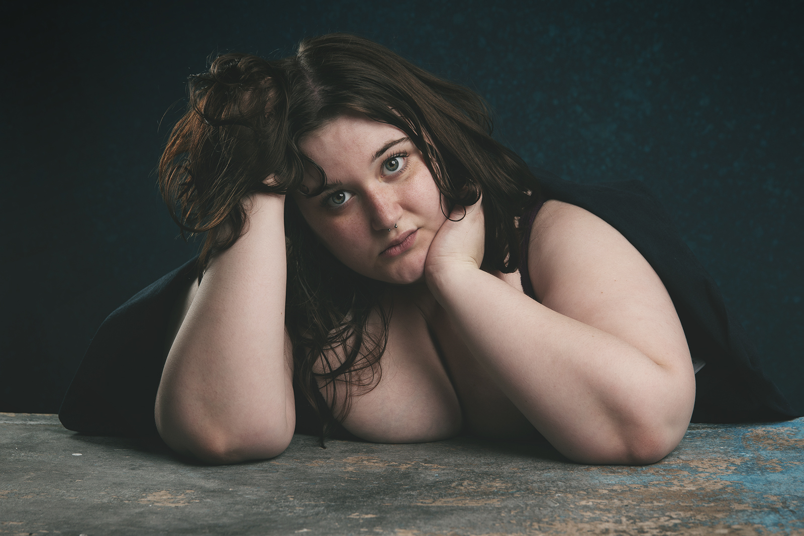 Uno scatto giocoso ed ironico, se ben interpreto le vostre intenzioni: vedo una ragazza dotata di una fisicità non convenzionale, per una modella, che si è mezza svestita contro voglia, assumere una posa molto poco elegante su quello che sembra essere un tavolaccio da lavoro. Con quello sguardo dritto in camera e la testa tra le mani, sembra dire: "Io non avrei voluto, ma Mugatu ha insisto tanto, e allora ... eccomi qua. Vado bene, così? Ma tu guarda cosa mi tocca fare ...". E ce lo dice con una dolcezza ed una timidezza così spontanee, che mi sorge quasi il dubbio che non stia fingendo. Uno scatto totalmente fuori dagli schemi, realizzato però con la perfezione formale che ti contraddistingue. Mi ricorda un po' la Fantasia Cromatica di J.S. Bach, in cui troviamo degli accordi degni del più ardito jazzista contemporaneo, confezionati senza sbavature entro i vincoli rigidi delle forme barocche vigenti all'epoca in cui il brano fu composto.