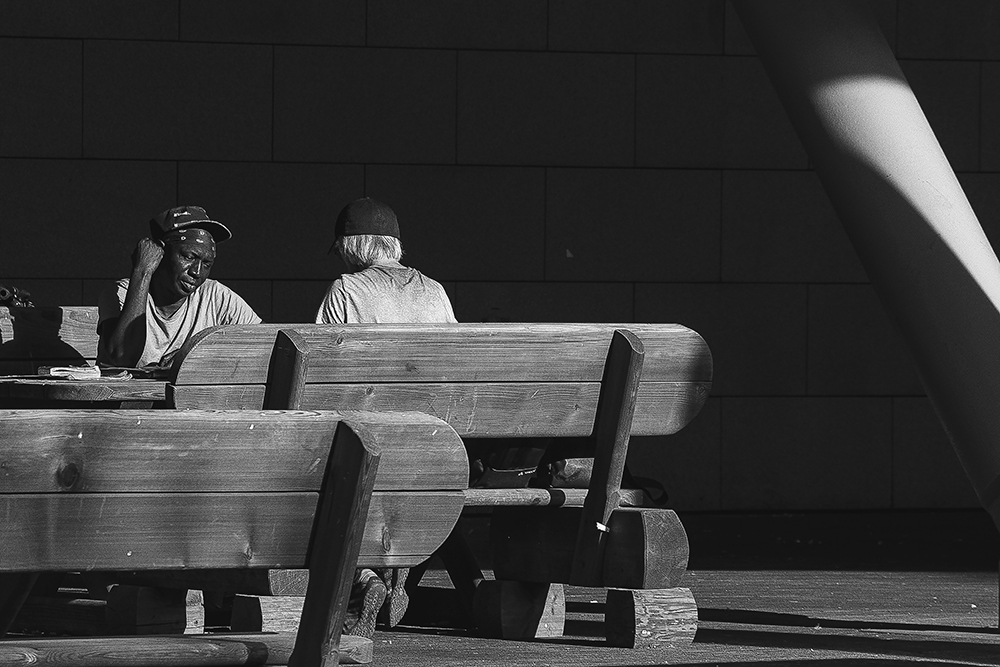 La scelta dello sfondo nero che evidenzia, per quanto possibile, i due soggetti al tavolo la trovo gradevole. Trovo, tuttavia, di disturbo la porzione di struttura situata a destra e lambita dalla luce. _________________