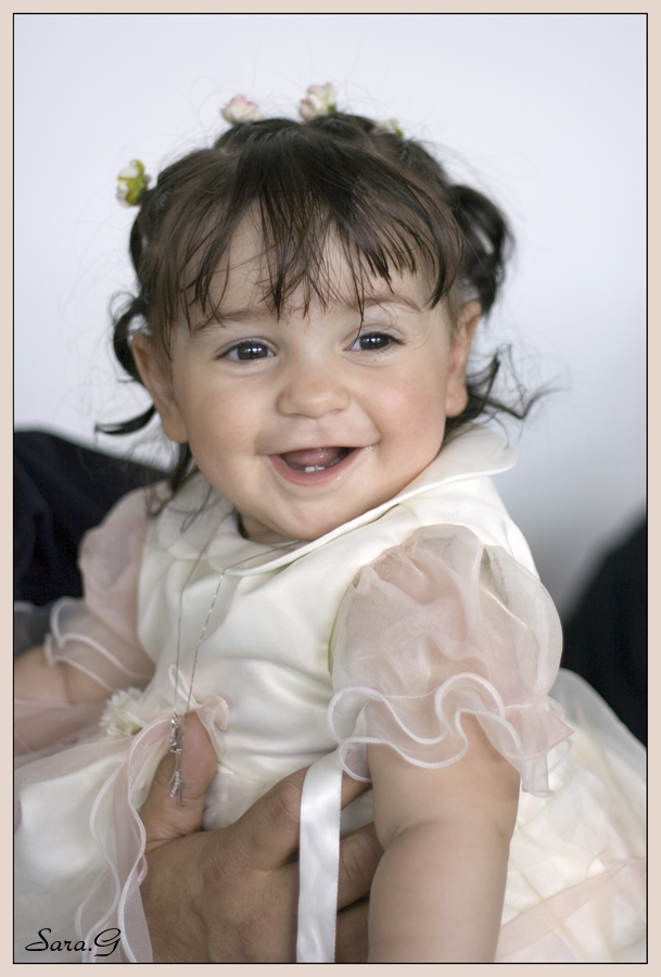 Ecco una foto scattata al battesimo di questa bellissima bambina.... sono stata incaricata come fotografa per fare il servizio dai suoi genitori..... Wink