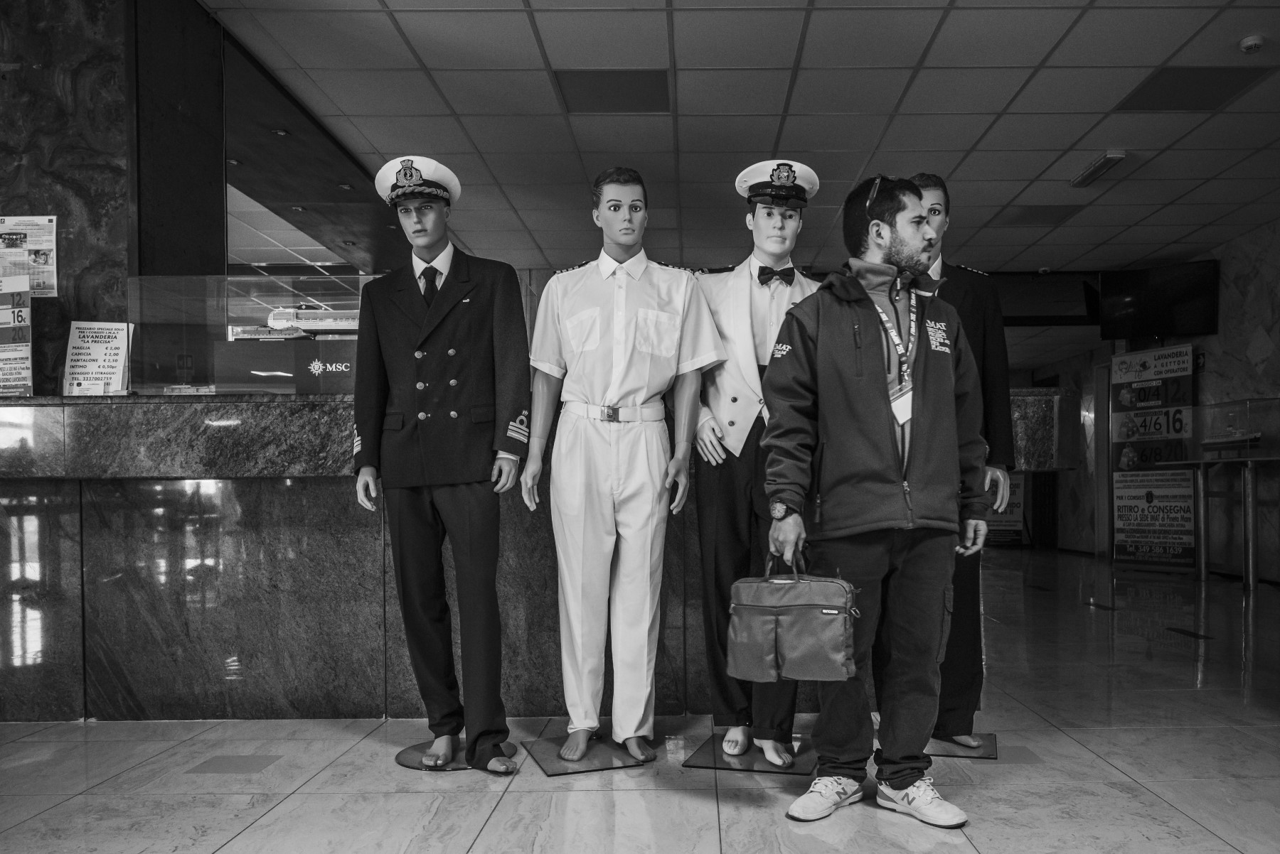 Carino l'accostamento tra l'umano ed i manichini che sembrano quasi "guardarlo" come un intruso poco gradito.