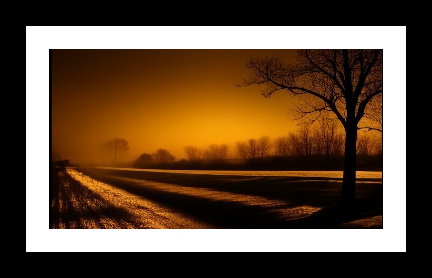 La luce di color arancio, i bellissimi e quasi indefiniti alberi sullo sfondo creano un ambiente altamente suggestivo e misterioso.