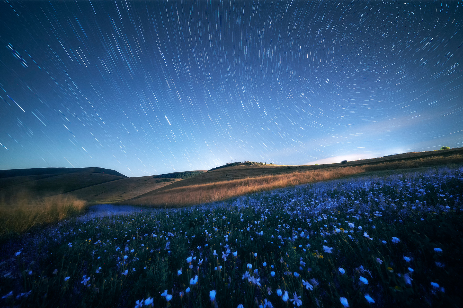 Bello lo startrail nache se la stella polare non è in centro, mi disturba inoltre la dominante azzurra sul primo piano che impatta con il verde retrostante.