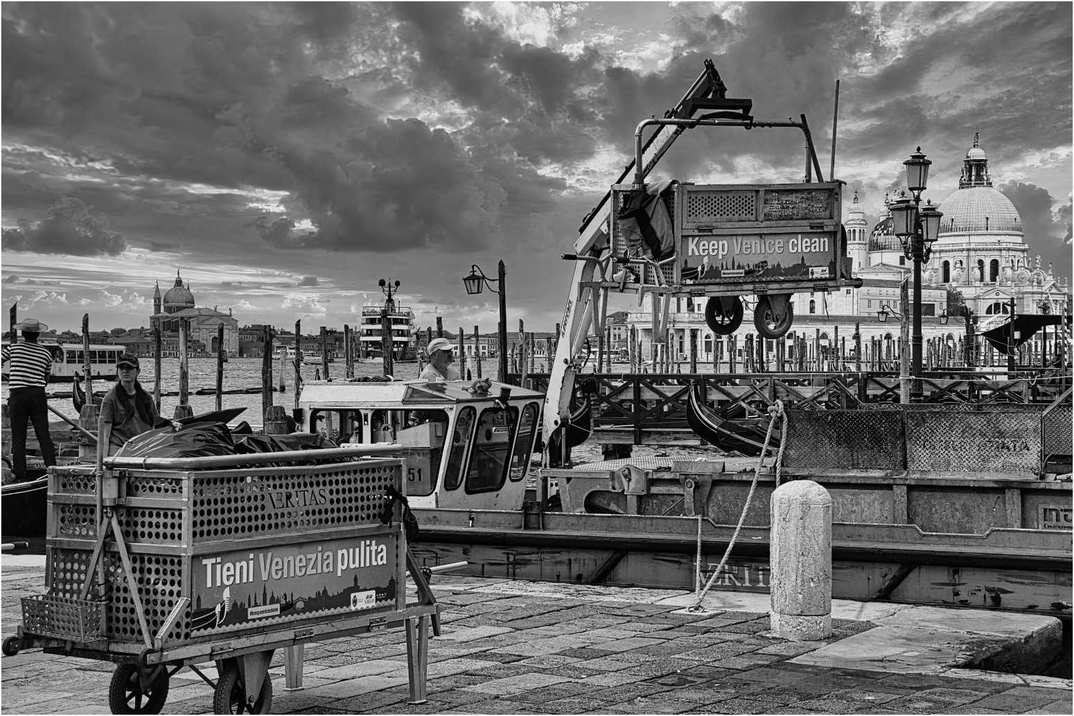 mezzi raccogli spazzatura, a pochi passi da p.zza San Marco