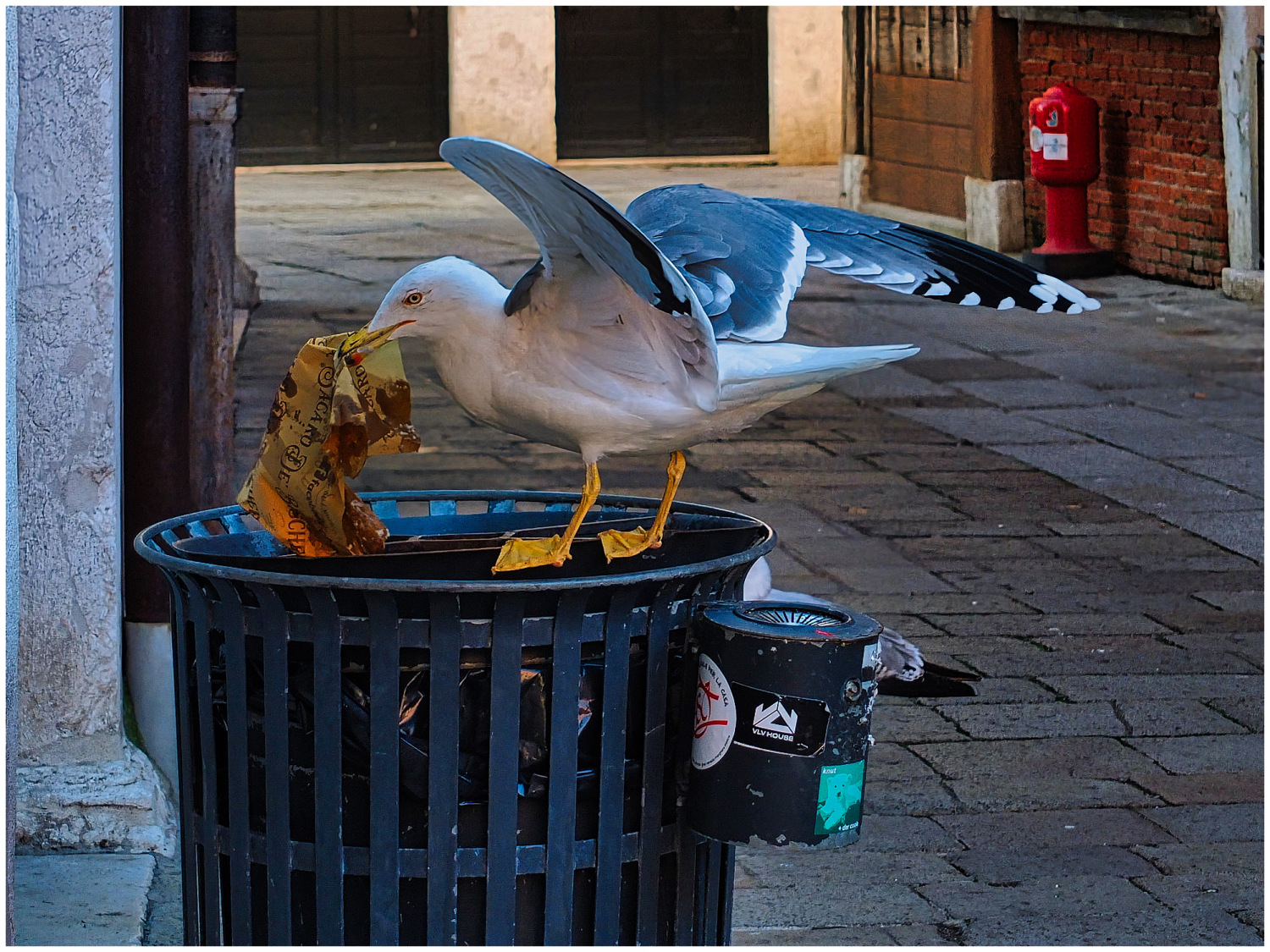 Un bel momento, i gabbiani sono spazzini per definizione e in questo caso lo sono anche nel contesto urbano.
