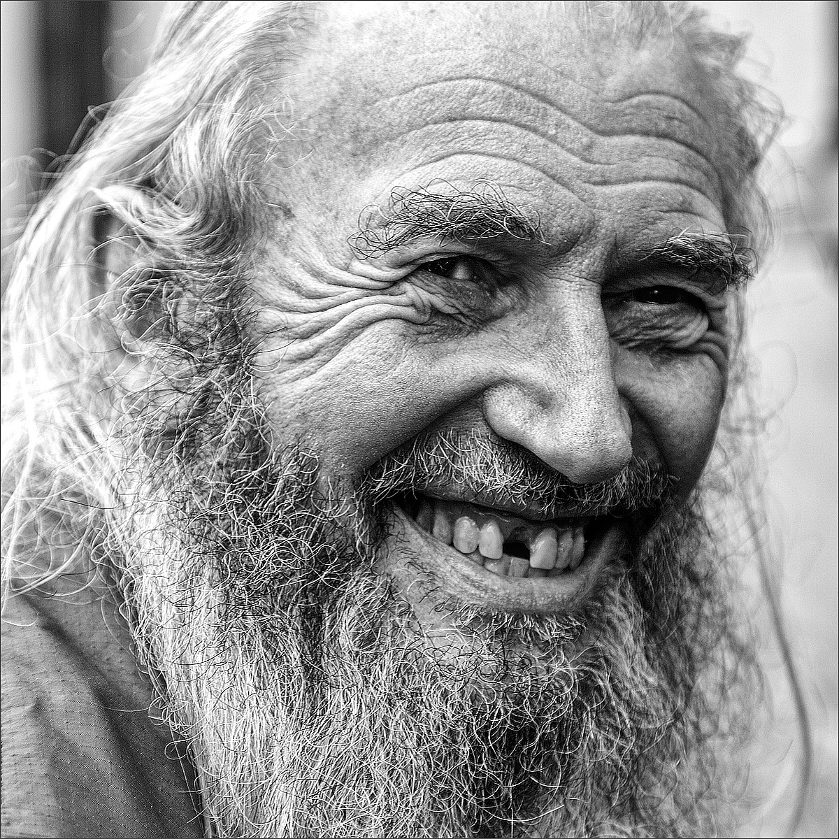 un ritratto di una qualità pazzesca, il simpatico signore che si presta simpaticamente a farsi fotografare col suo sorriso magnetico e sbarazzino, il tutto condito da un b/n croccante e ben gestito, bravissimo.